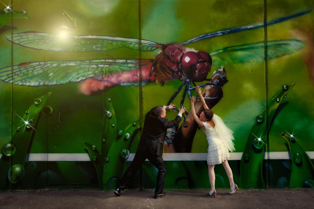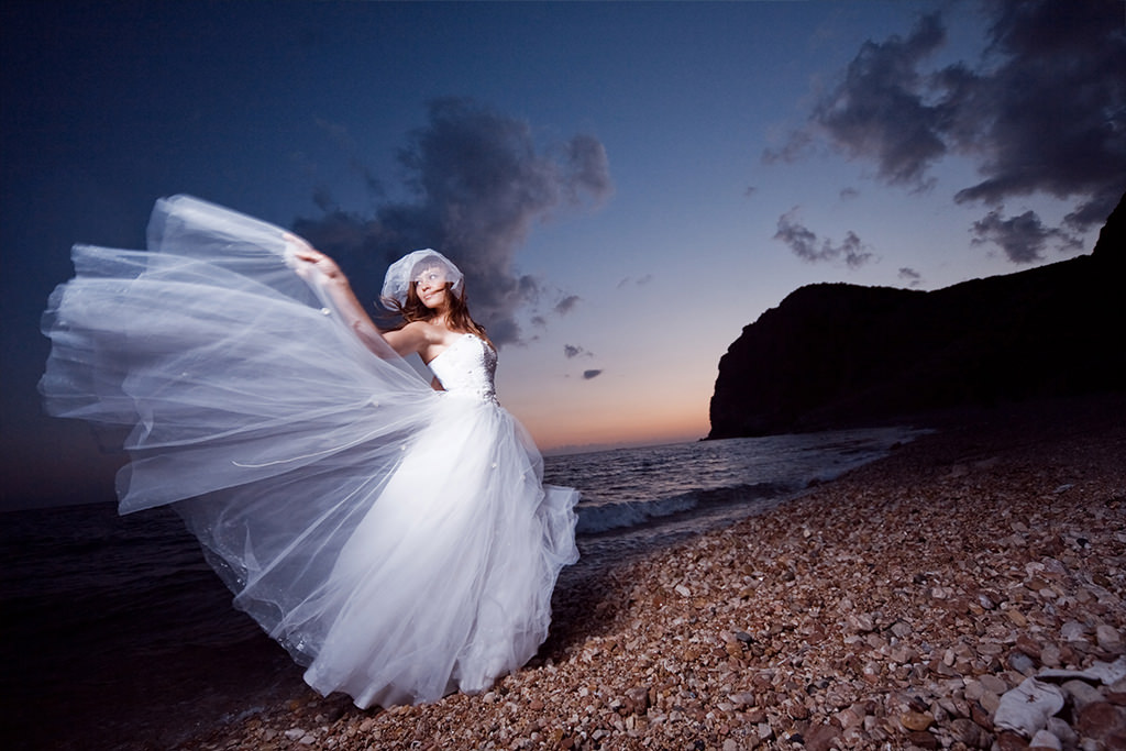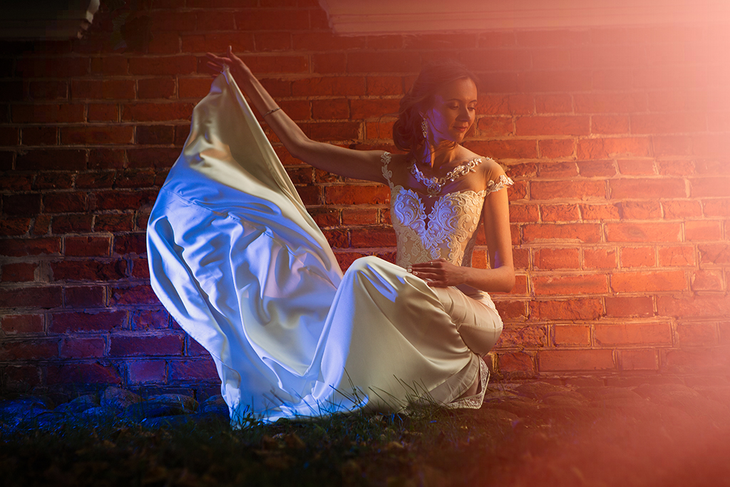 С помощью отражателя можно уловить поток света и перенаправить его на объект фотосъемки. Я постоянно использую в своей работе отражатели. Ведь когда солнце светит слишком ярко, то тени получаются очень глубокими. В пасмурную и облачную погоду данное приспособление не приносит никакой пользы. Свадебное платье белого цвета также способно выполнять функции отражателя при ярком солнце, делая снимки более насыщенными и сочными.